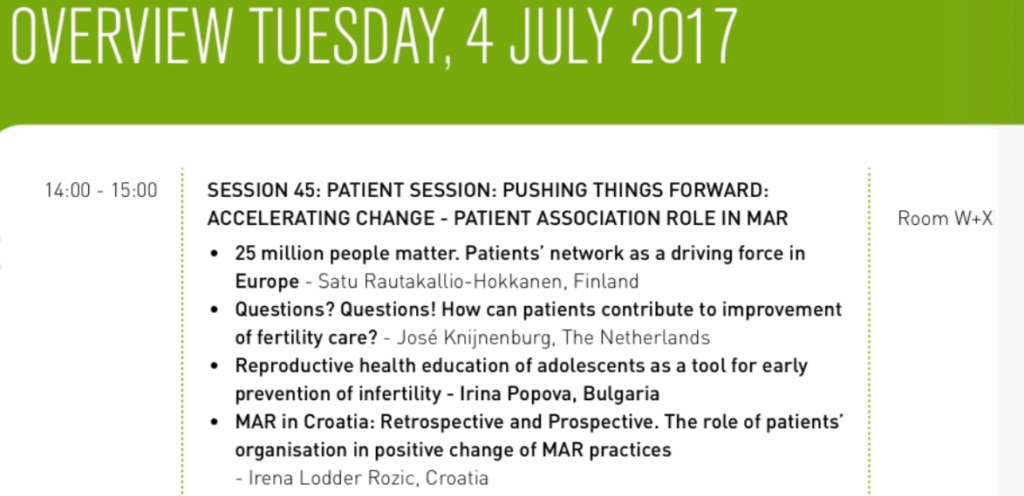 On Tuesday, July 4, we will once more organize the Patient Session in the ESHRE congress. The subject for 2017 is: